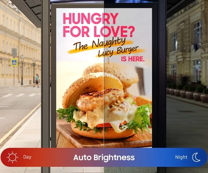 High brightness (3,000 to 7,000 nits), vandal-resistant glass, IP65 enclosures, remote content management.
