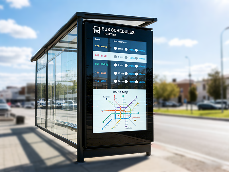 Bus Stops: 32" to 43" Outdoor Waterproof LCDs are the standard for durability.